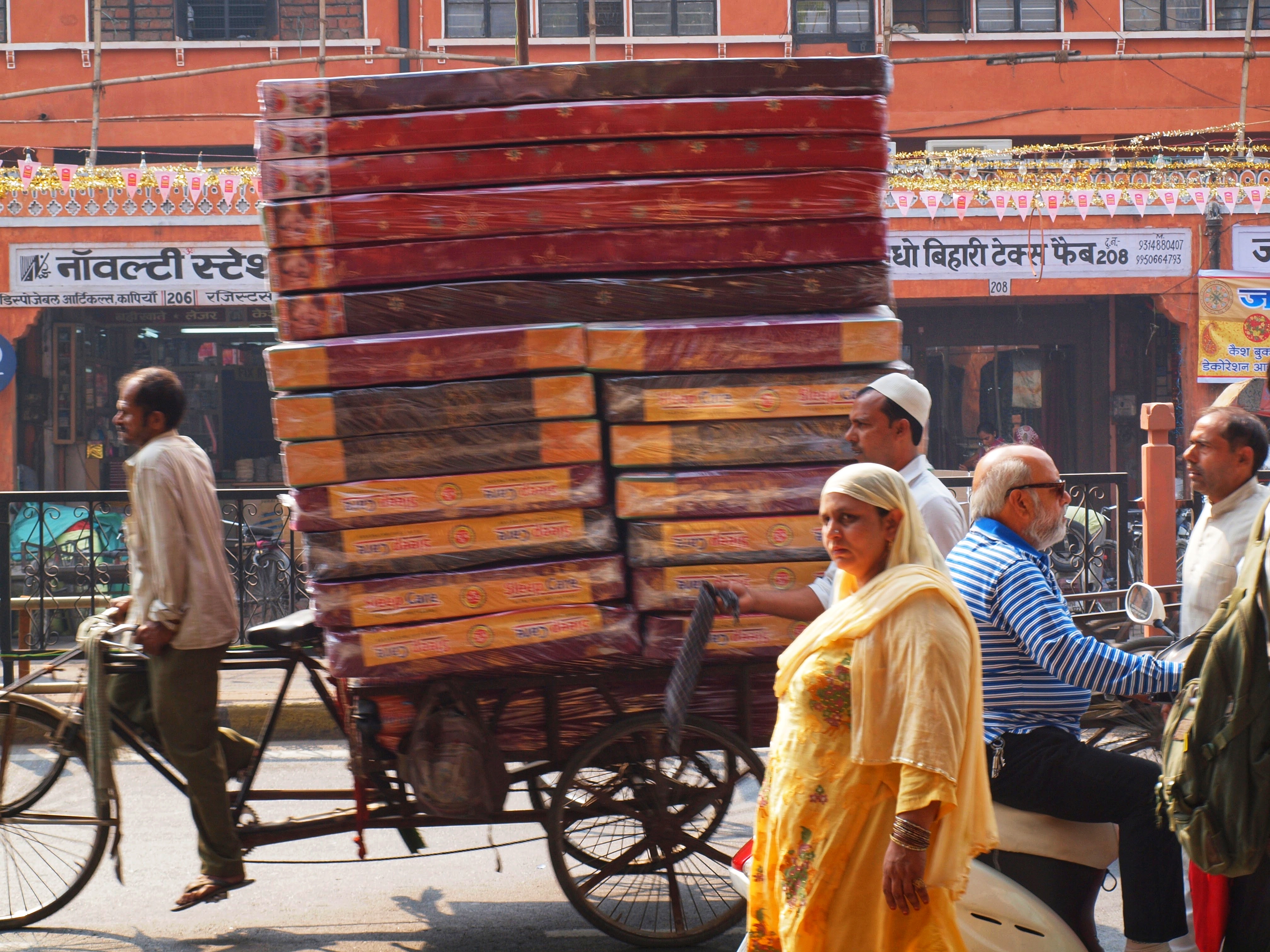 A not unusual sight of a man on a bicycle transported a seemingly impossible load. Within the image we see traditional costume and modern dress, something I asked about and never got a satisfactory answer. You will also see a mixture of faiths intertwined, with no tension.