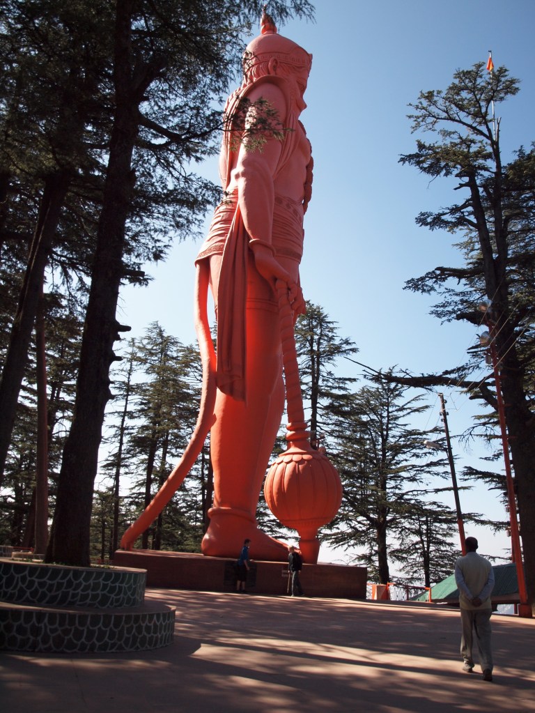The statue of Lord Hanuman – the monkey god dominates the Jakhu hills.